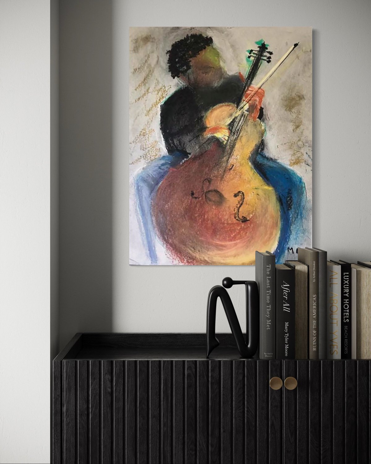 Portrait: Mixed Media On Board. Portrait of Sheku Kanneh-Mason MBE, award-winning and decorated cello player.